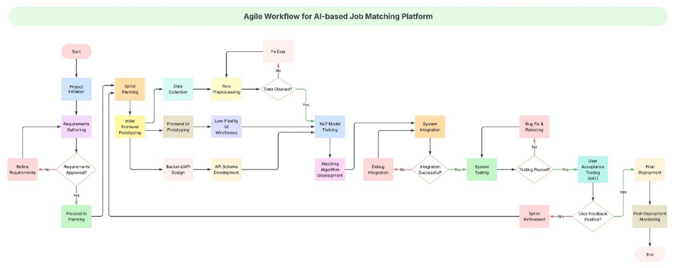 Designed a full Agile project management plan for an AI job matching platform, using tools like Kanban, PERT, and Monte Carlo simulation.